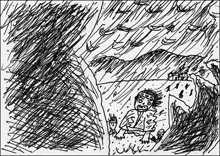 第33回はここまで集平絵本を描いた順に1冊ずつ語ってきた、とりあえず最終回です。来年からは絵本以外の出版物(小説、児童文学、評論など)を、やはり書いた順に語っていきます。前回の「にんげんがいじわるやからや」だけではなく、集平さんには何冊もの未完絵本、未刊絵本があります。今回はその中のいくつかを見せてくださるそうです。これらは出版社や書店や読者との共同作業で育て、実りをつけるはずの絵本の「苗」です(セミナリヨの語源が「苗床」だったことを思い出してください)。私たちもその共同作業に参加しましょう。たくさんの人に参加してもらえますように。(齋藤)
