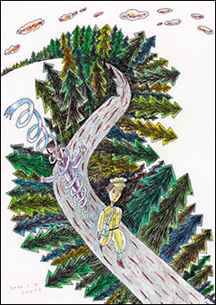 描き終えてホッとしました。まだぼくの絵はゆるんでいないぞ、前より明るくカラフルになってきたぞ、と自分で微笑むことができたからです。