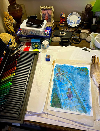 画材:リキテックス、色鉛筆、顔料インクペン