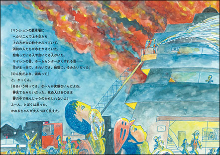 夜中にサイレンの音で目を覚ましたショウ。ベランダから見ると、かおるちゃん家の近くで炎が上がっていた。翌日、「こわかったよ」と言って、火事のときのことを話しはじめるかおるちゃんが、ショウには急に大人っぽく感じられるのだった……。(出版社より)