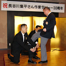 左は姫路在住の詩人、大西隆志さん。祝辞をいただきました。