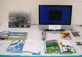 姫路東高 百年のあゆみ展で集平の原画上映集平の出身校、兵庫県立姫路東高等学校の創立100周年記念行事で『ホームランを打ったことのない君に』と『大きな大きな船』の原画がモニター上映されました。 ★会場のようす